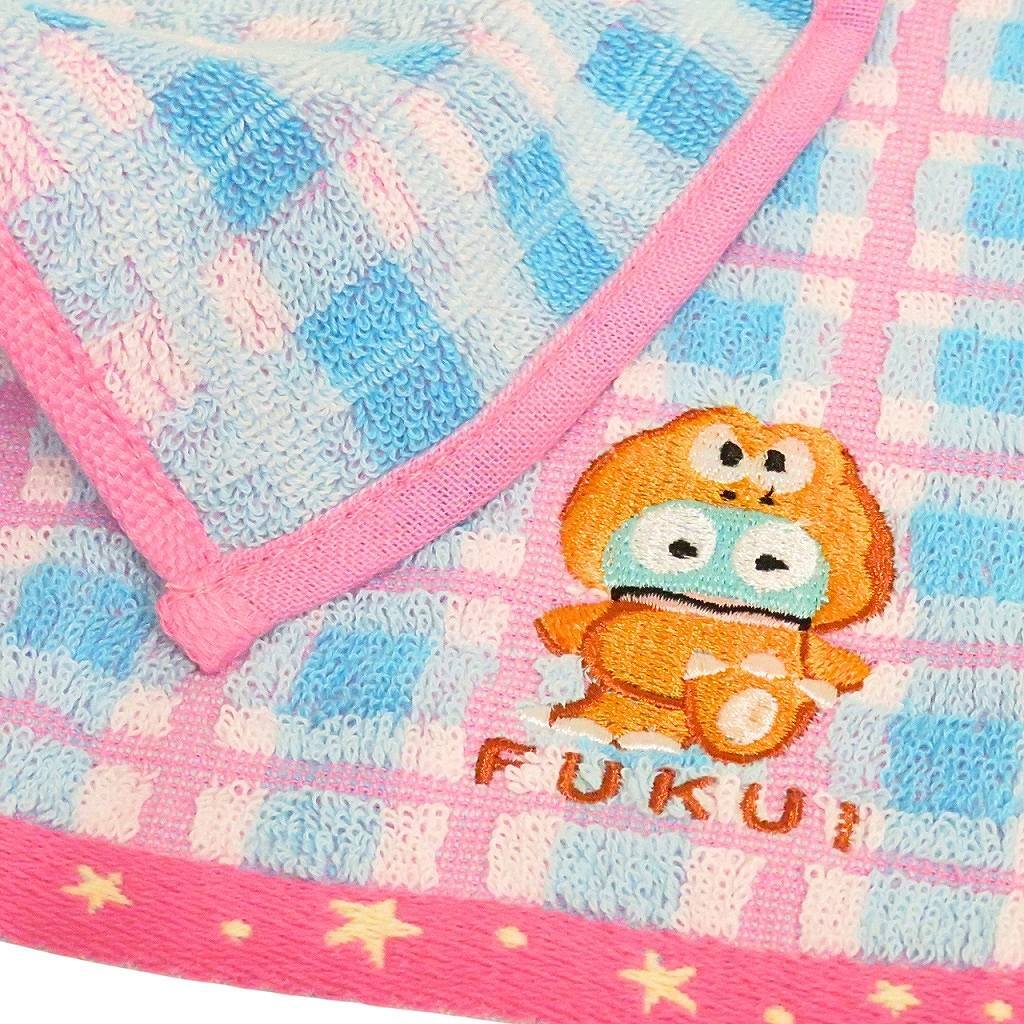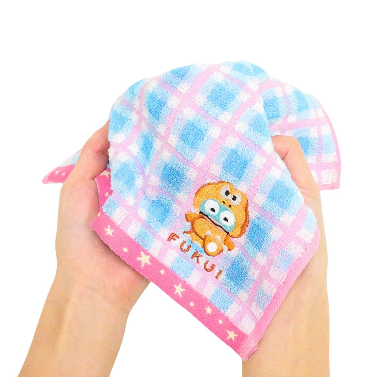 かわいいサンリオのキャラクターがワンポイントでデザインされた、福井県限定のハンドタオルです。