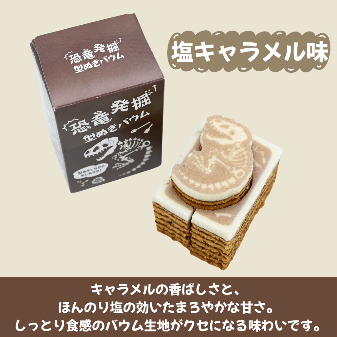 まるで化石発掘のようなドキドキを楽しめる、新感覚スイーツ「恐竜発掘型ぬきバウム」です。