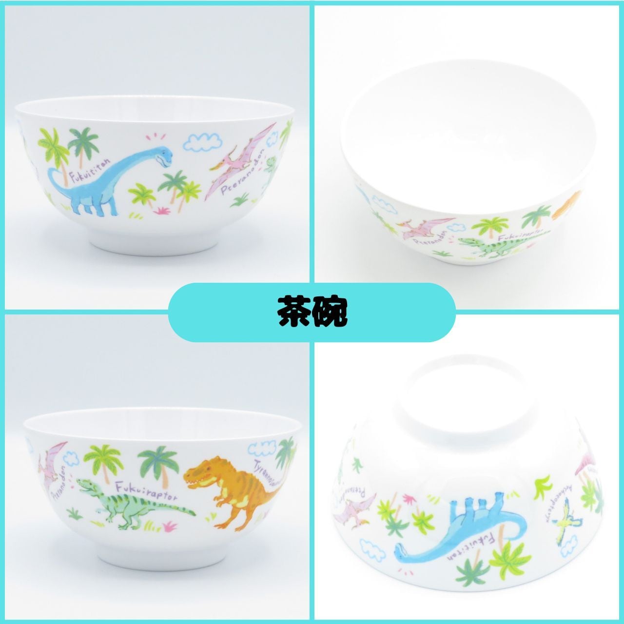 パステルなカラーをベースに福井県で発掘された恐竜をデザインした可愛い食器です。