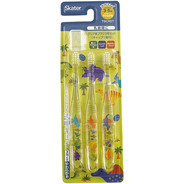 抗菌 恐竜クリア歯ブラシ 3本セット 園児用 (3才~5才) ディノサウルスピクチャ
