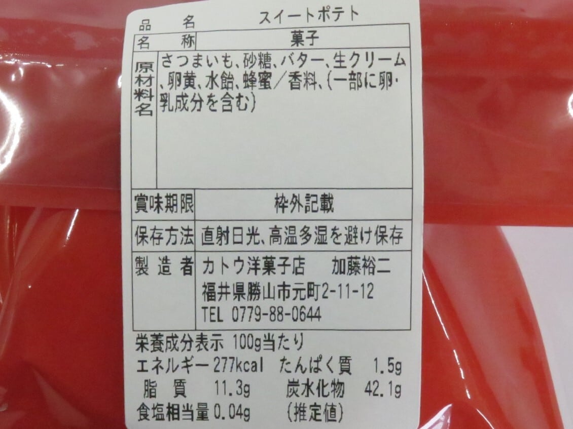 勝山で誰もが知る「カトウのケーキ屋」が手がける、おいものやさしい甘さが広がるスイーツ。